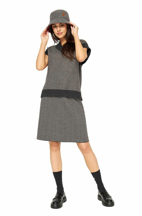 Lasciatevi incantare dall’eleganza moderna della gonna DALIA! Il suo dinamico motivo a spina di pesce in grigio e nero unisce un design raffinato a un lusso puro. Realizzata al 100% in fibra di baby alpaca, vi avvolge in un’incomparabile morbidezza. La lusinghiera linea a trapezio offre inoltre il massimo comfort e una libertà di movimento senza limiti. Perfetta per l’ufficio o per occasioni speciali.