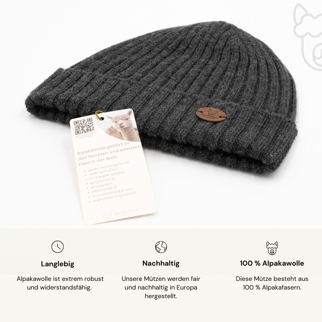 Il nostro berretto premium in alpaca "CHANNEL" è la scelta perfetta per le giornate più fredde. Questo berretto morbido e caldo, realizzato al 100% in pregiata lana di alpaca, si adatta piacevolmente alla testa e ti mantiene ben al caldo.