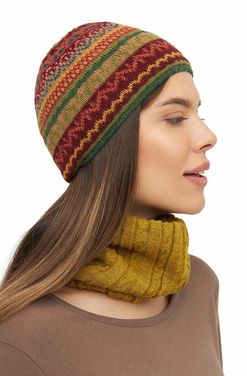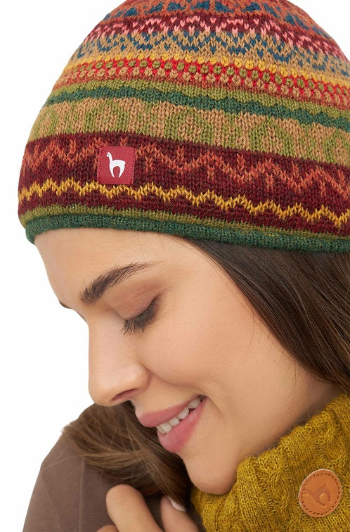 Ontdek de natuurlijke kleuren en de soepele, weerbestendige Alpaca-muts LUNA. Het meerlagige jacquardbreipatroon houdt bijzonder warm en de duurzame alpaca-wol garandeert een lange levensduur. Dankzij de zachte binnenvoering en goede pasvorm is LUNA ook winddicht. Perfect voor koude dagen!