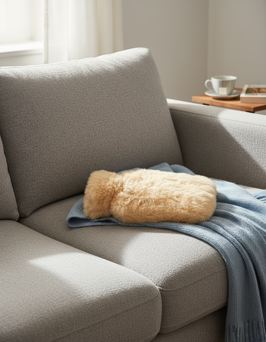 Ta termofor z alpaki ma przytulny, supermiękki pokrowiec z alpaki (kolor beżowy) i gwarantuje wyjątkowe doznania dotykowe.