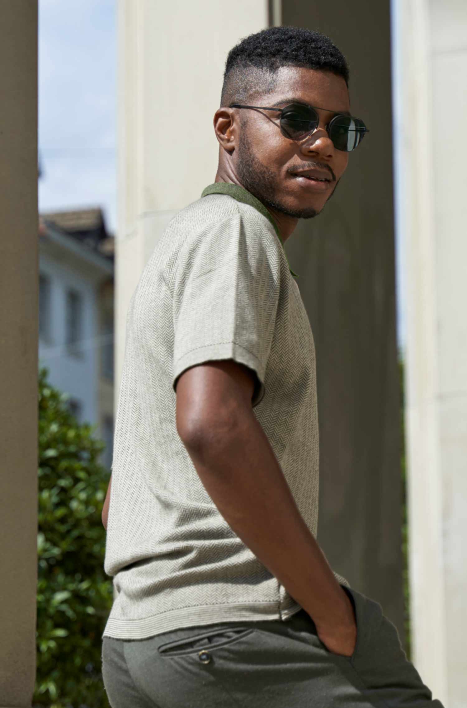 - Sportowa koszulka polo z jodełkowym wzorem