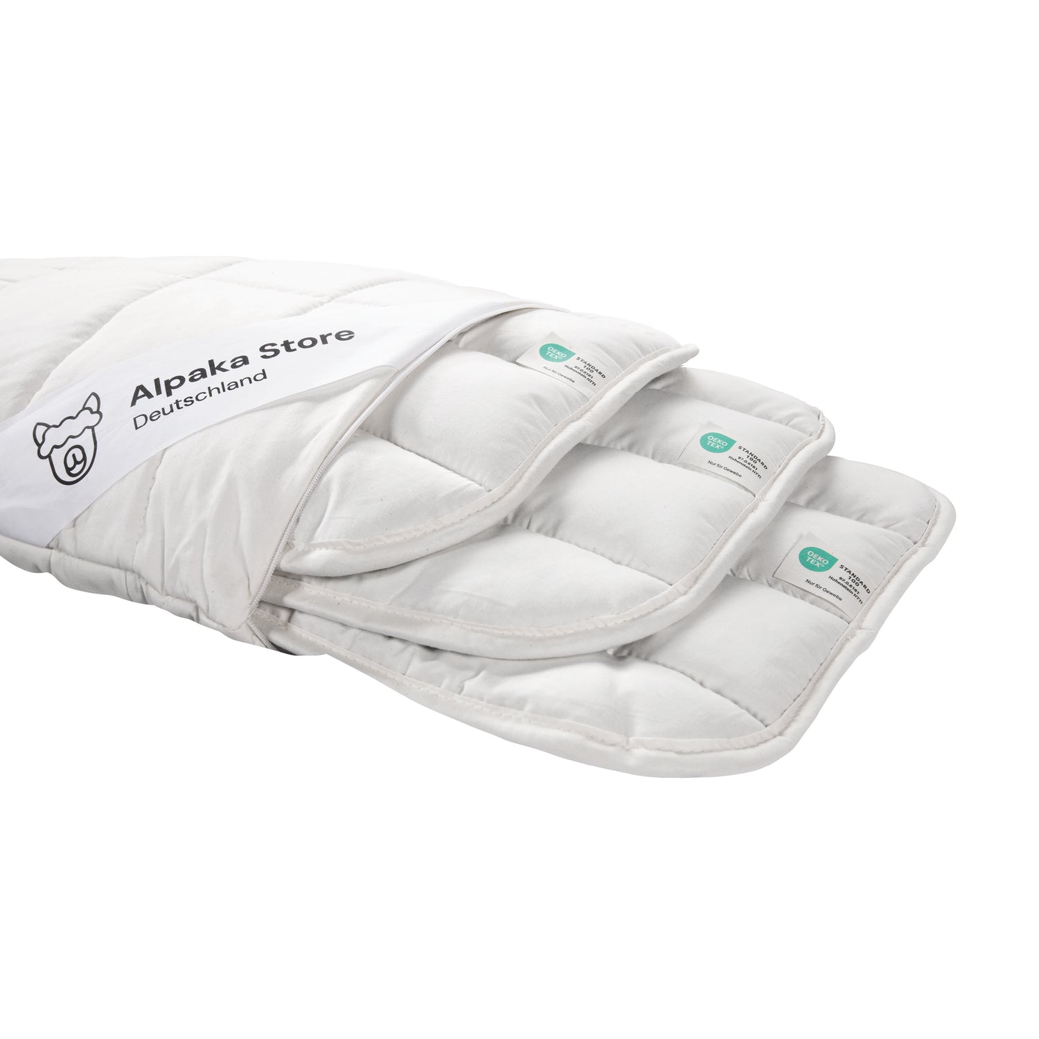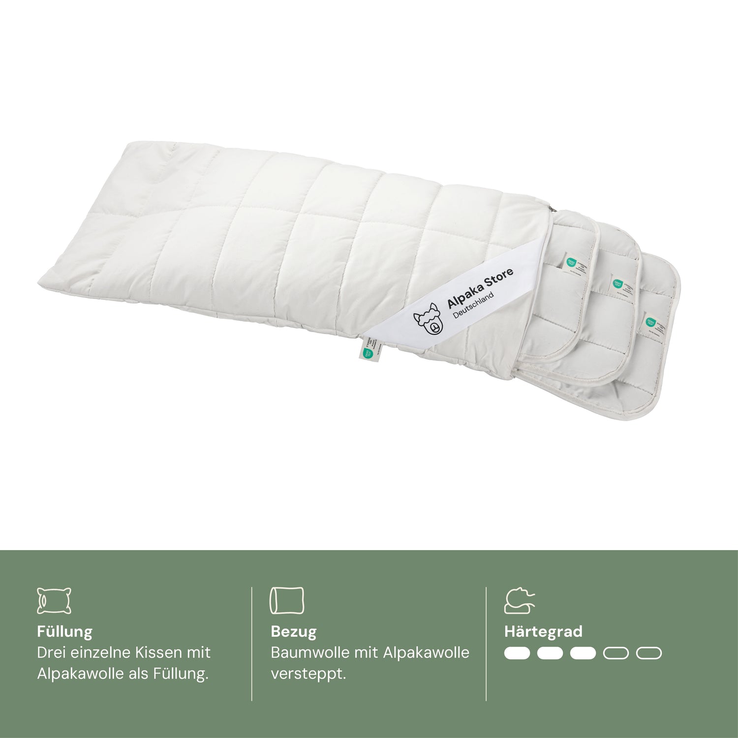 Poduszka podpierająca składa się z trzech wewnętrznych poduszek, z których każda jest wypełniona w 100% wełną alpaki. Poduszki można wyjmować pojedynczo, co pozwala na elastyczną regulację wysokości.