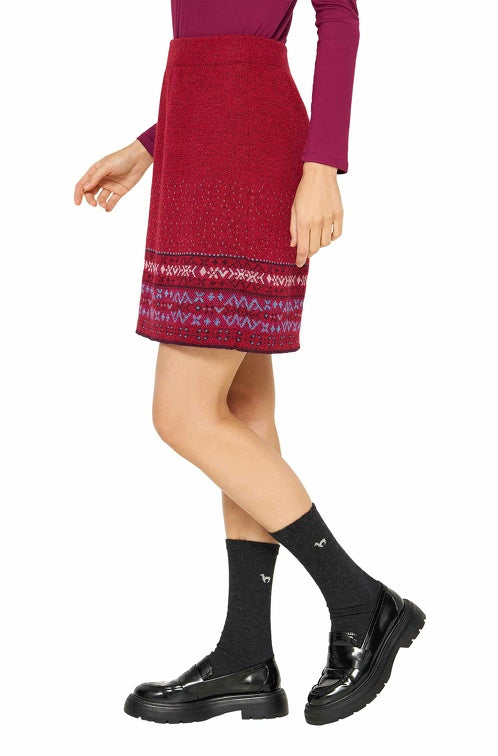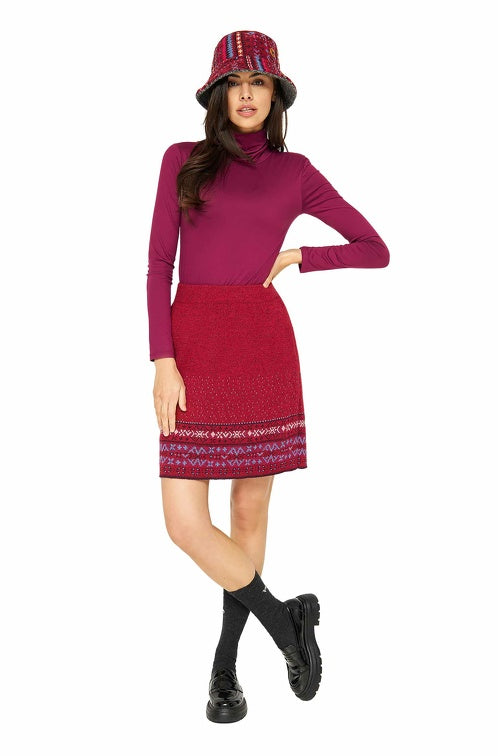 Experience the gentle touch of 100% baby alpaca in our Alpaca Skirt PUKA. The traditional design meets unique ethnic patterns inspired by the colorful Andes. Perfectly paired with simple tops, this skirt offers an unparalleled soft feel and is sustainably and durably produced. Available in sizes S-L.