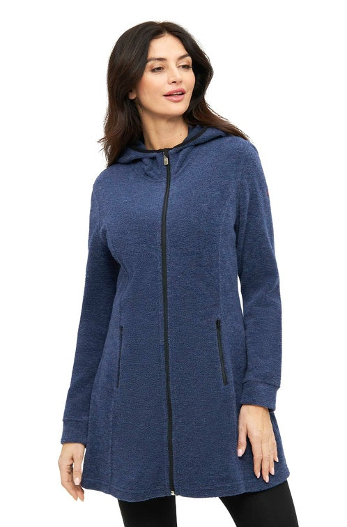 Der Alpaka Kapuzenmantel APU FLEECE kombiniert edles Baby Alpaka, weichste Merinowolle und hochwertige Bio-Pima-Baumwolle für ein unvergleichlich warmes und zugleich leichtes Tragegefühl. Sein femininer, taillierter Schnitt mit ausgestelltem Saum und praktische Kapuze bietet stilvolle Funktionalität an kühlen Tagen. Die atmungsaktiven Materialien sorgen für optimale Klimaregulierung, während seitliche Reißverschlusstaschen und ein dezentes eingesticktes Logo gelungenen Komfort und eleganten Look abrunden. Mit mulesing-freier Wolle ist dieser Mantel bewusste Nachhaltigkeit und zeitloses Design in einem.