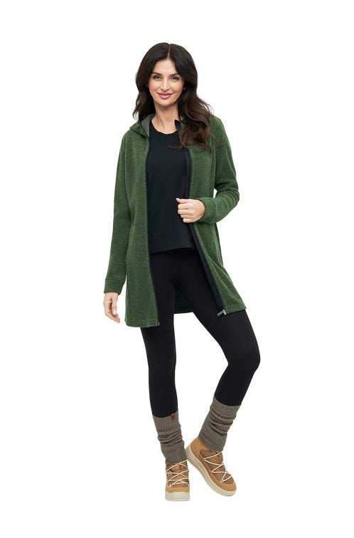 Alpaka Kapuzenmantel APU FLEECE mit Alpaka, Merino & Bio-Baumwolle - waldgrün